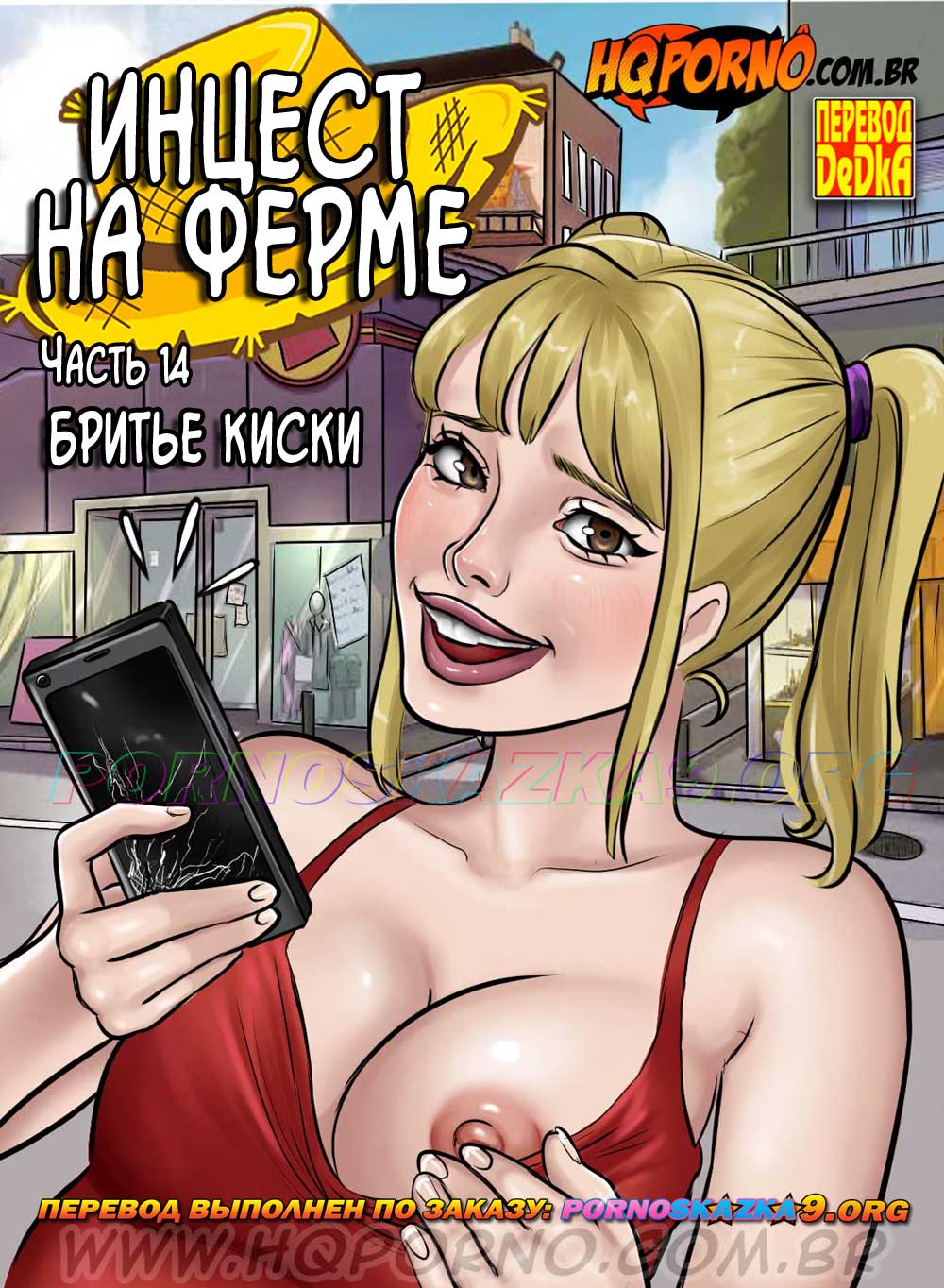 Порно комикс Инцест на ферме. Часть 14: Бритье киски. Танинья случайно разбила экран мобильного телефона и столкнулась с тем, что ремонт телефона стоит дороже, чем новый. Поэтому она использует все свои навыки обольщения, чтобы, помимо бесплатного ремонта, ей достался еще и новый телефон, и еще какая-нибудь халява…